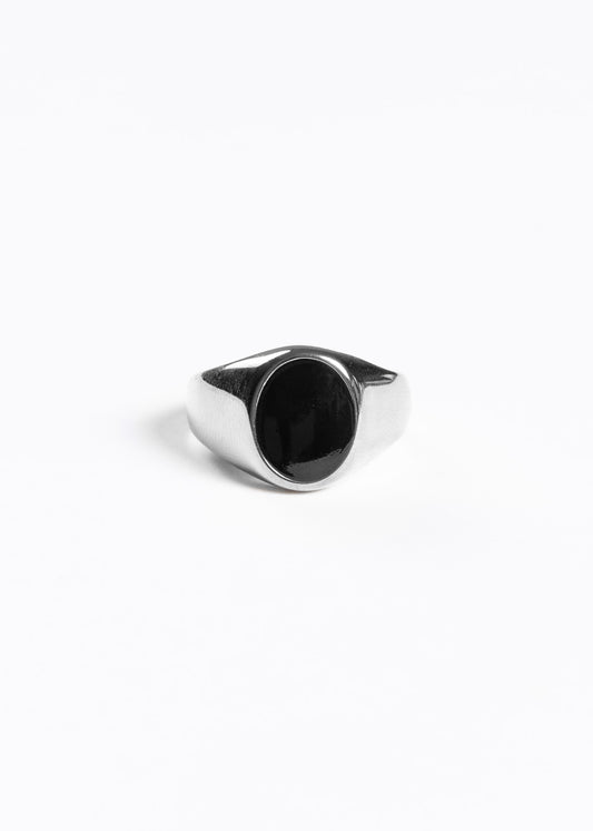 Anillo de mesa con piedra negra acero quirúrgico - Plateado