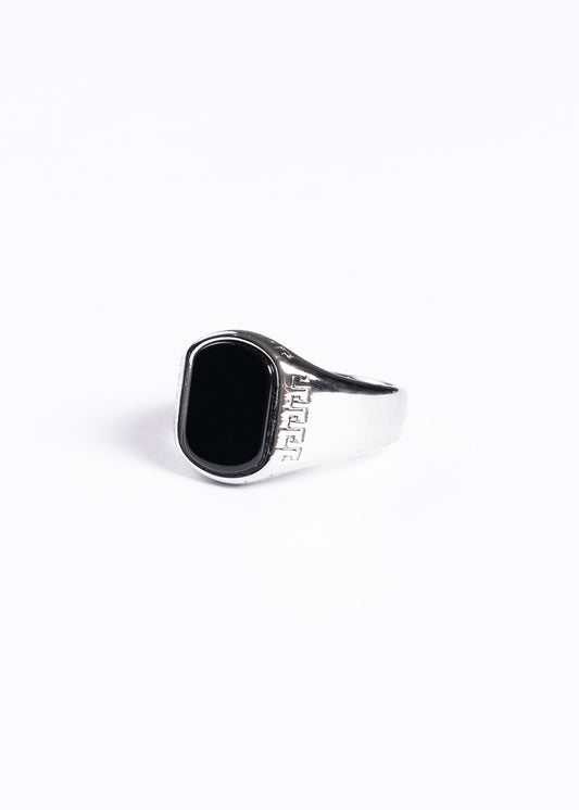 Anillo de mesa G griega con piedra negra acero quirúrgico
