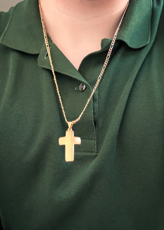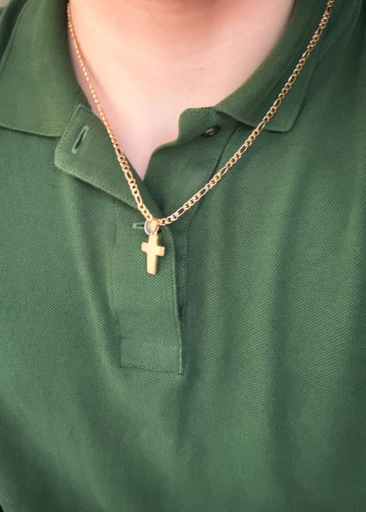 Conjunto cadena 45cm y cruz acero quirúrgico - Dorado unisex