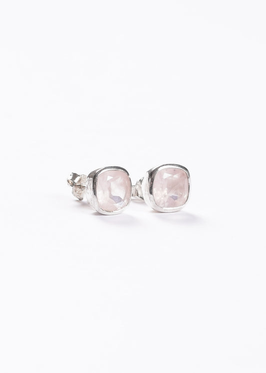 • Caravanas cuarzo rosa cuadradas 10mm plata 925 - Amor