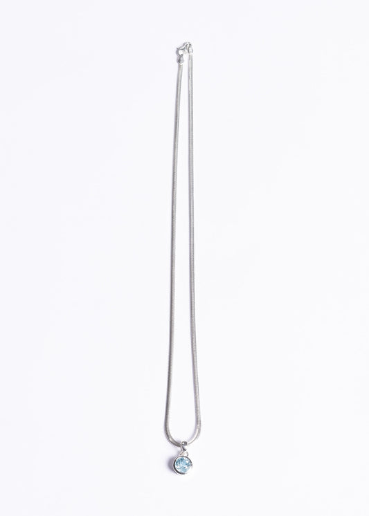 Cadena Omega Italiana 50cm con dije redondo topacio azul plata 925