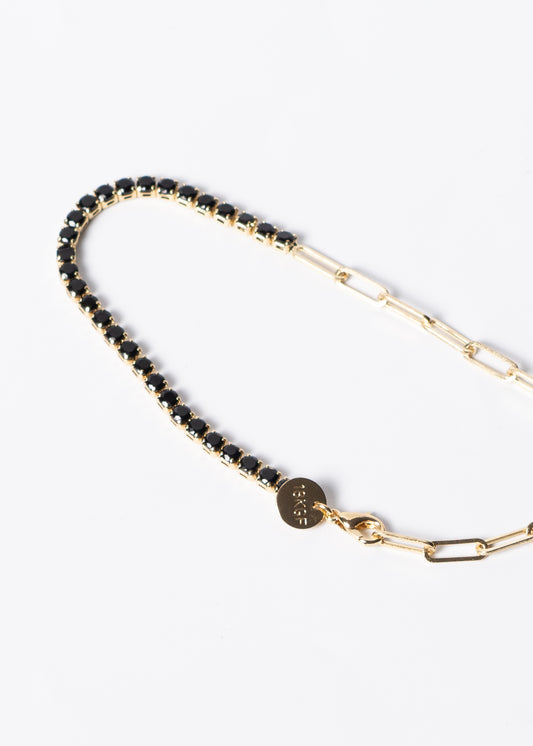 Pulsera tennis eslabones y zirconias negras baño en oro 18k