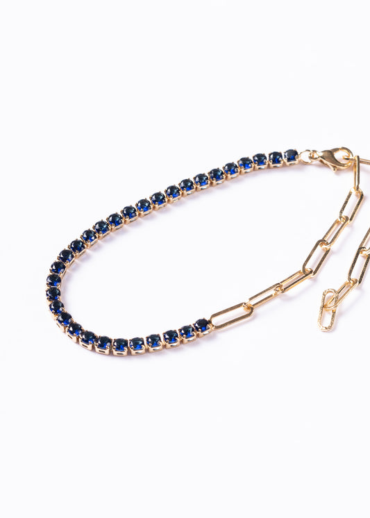 Pulsera tennis eslabones y zirconias azules - Baño en oro 18k