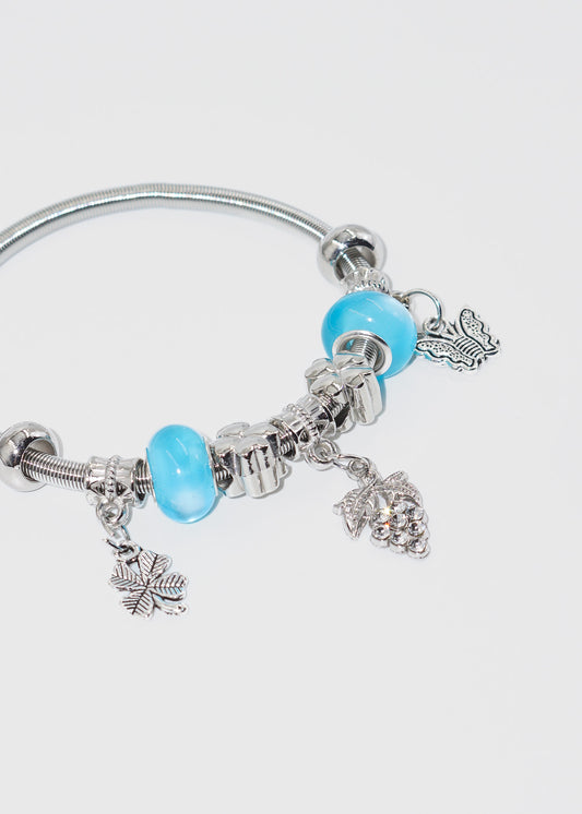 Pulsera mostacillas con dije ojo turco colgante elastizada