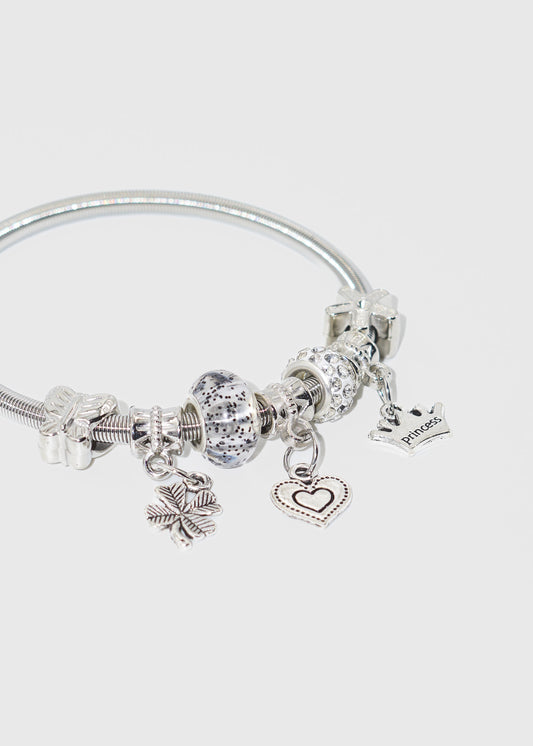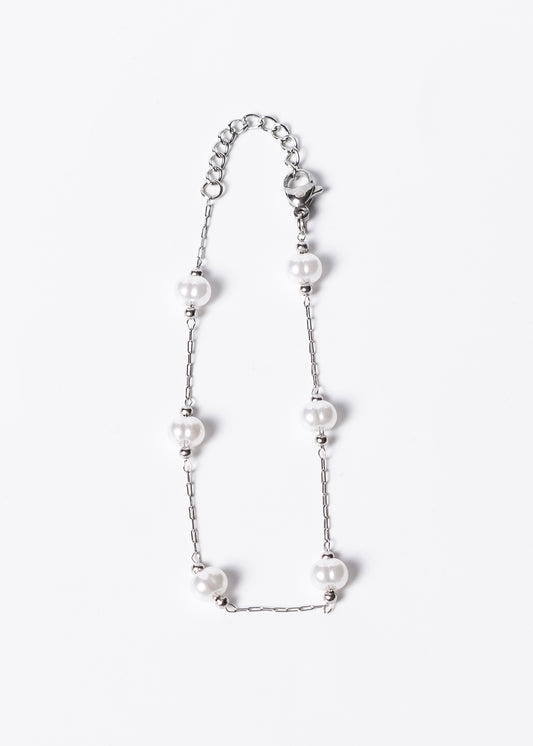 Pulsera forcet 6 perlas acero quirúrgico blanco