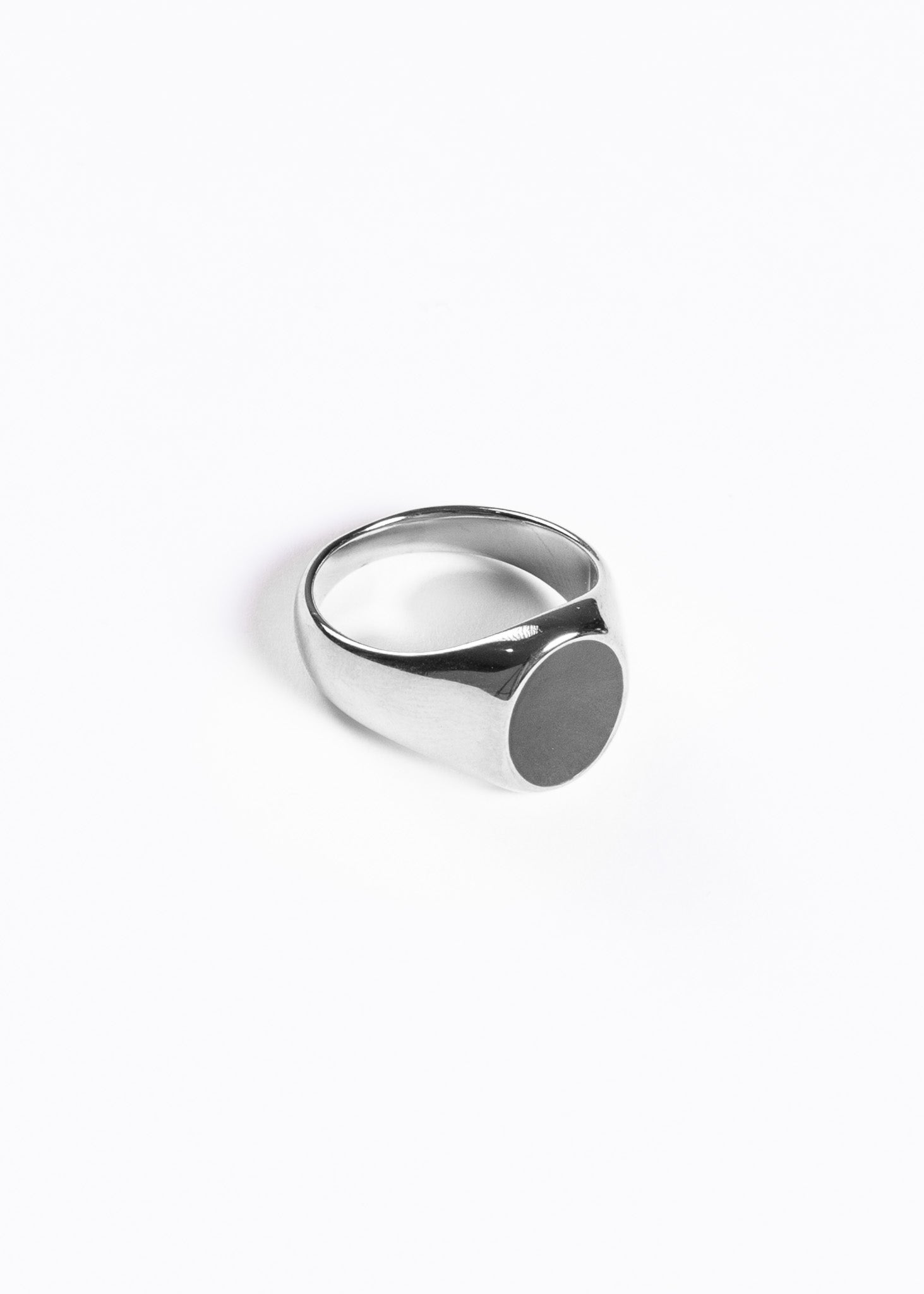 Anillo de mesa con piedra negra acero quirúrgico - Plateado