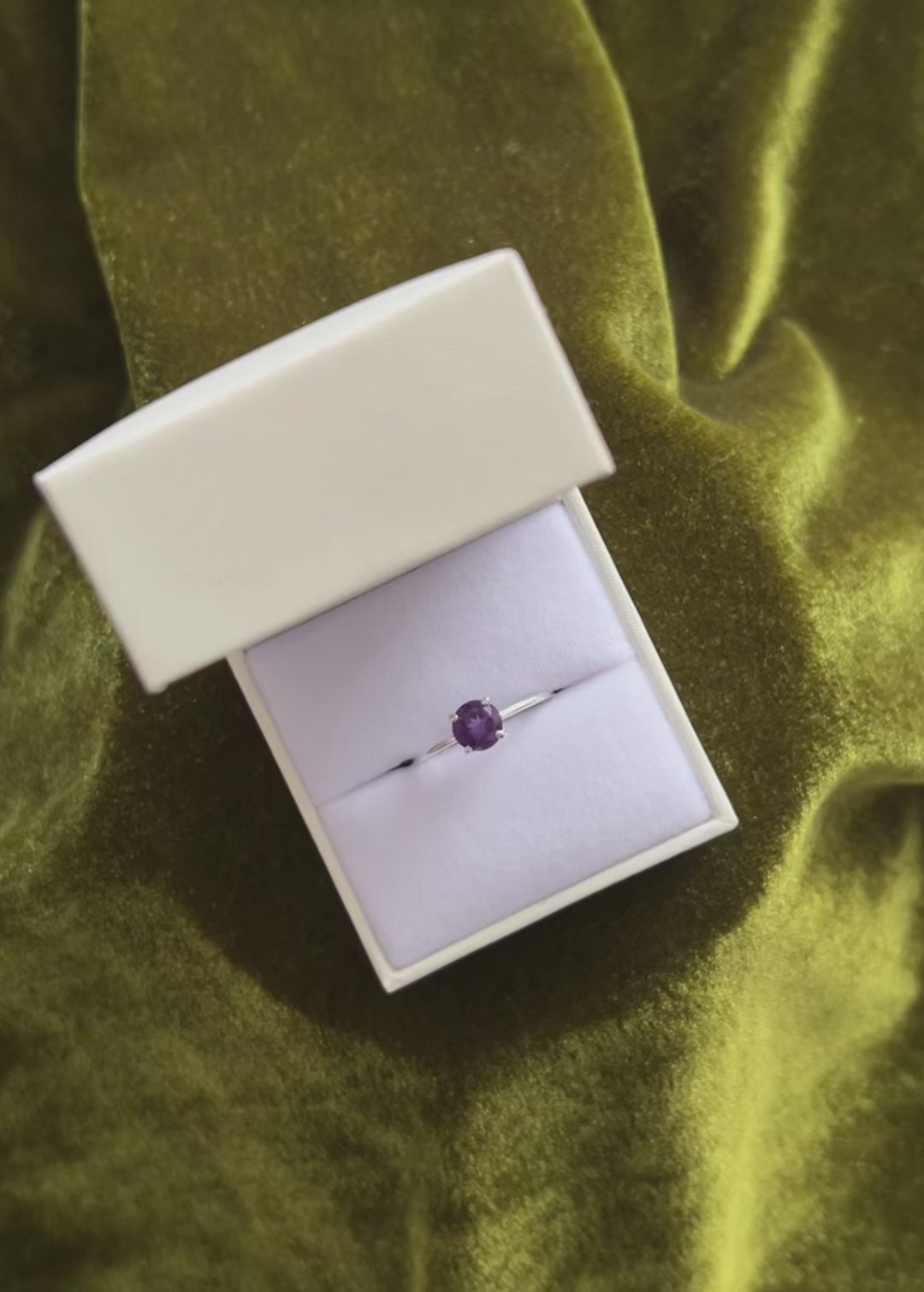Anillo punto luz piedra amatista plata 925 - Cambios