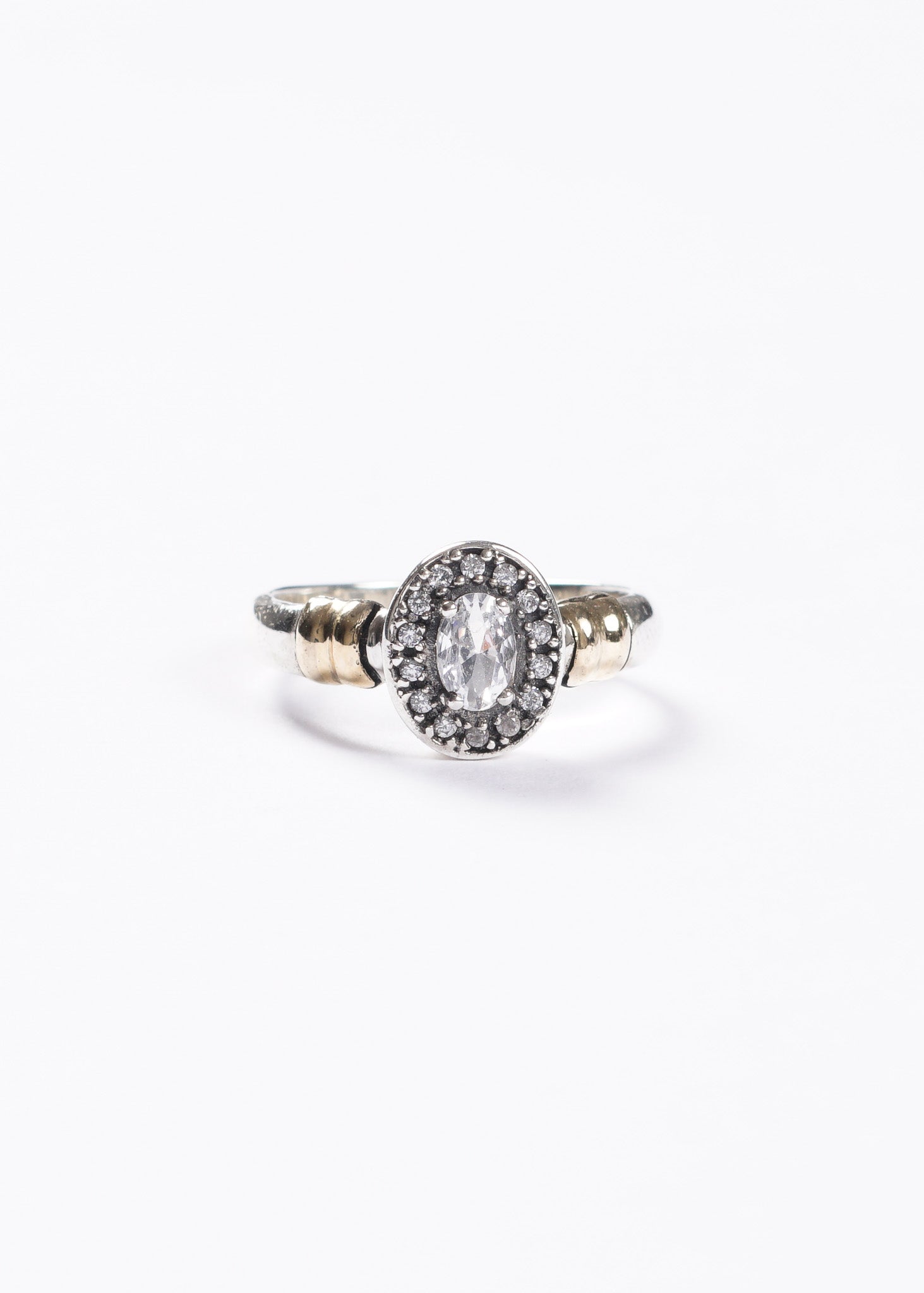 Anillo solitario multi zirconias blancas plata 925 & doublé de oro
