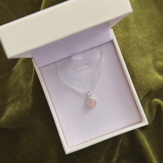 Cadena collar con dije cuarzo rosa redondo plata 925 - Amor