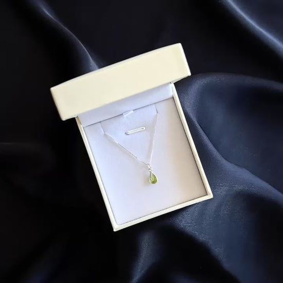 Cadena collar con dije gota peridoto mini plata 925 - Riqueza