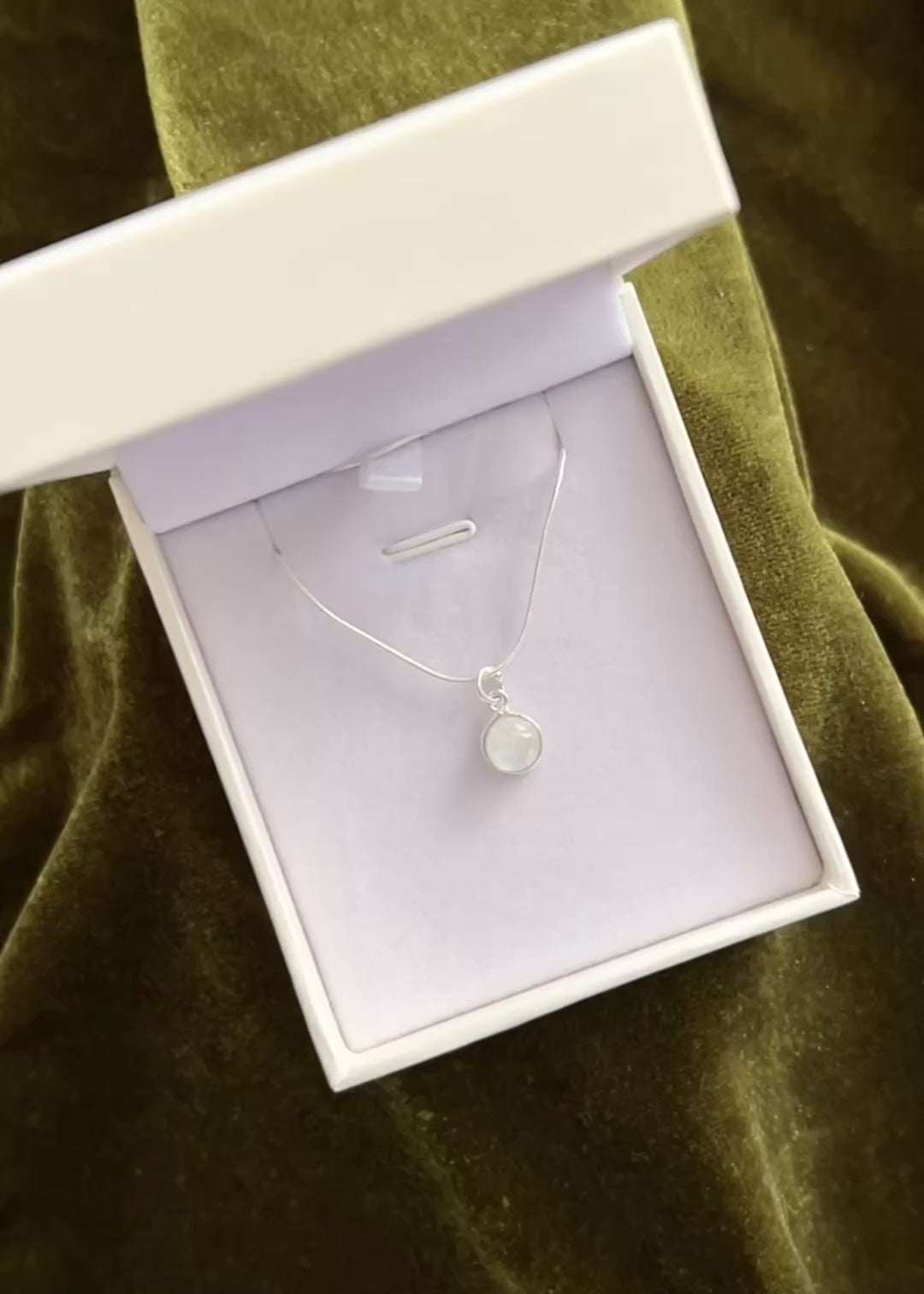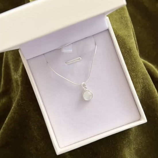 Cadena collar con dije piedra luna redondo plata 925 - Paz
