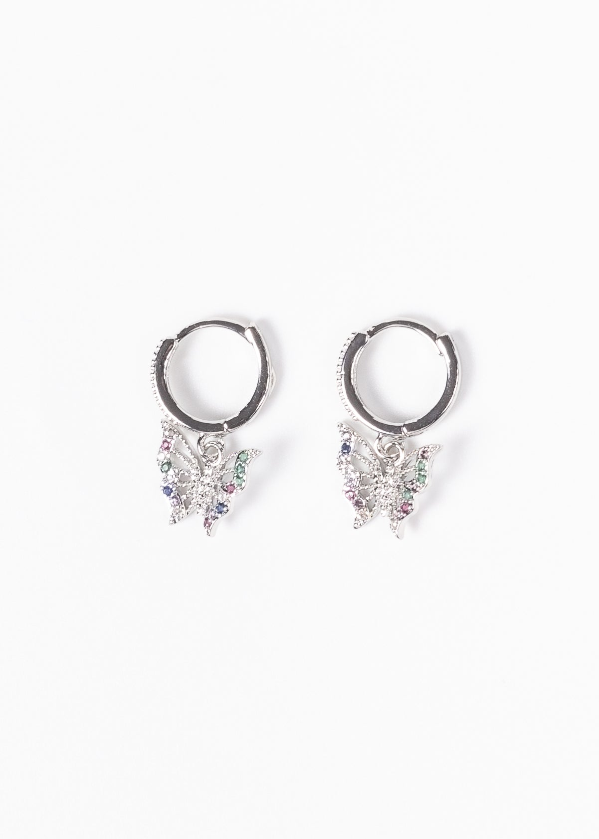 Caravanas aros dije mariposa zirconias de color acero quirúrgico