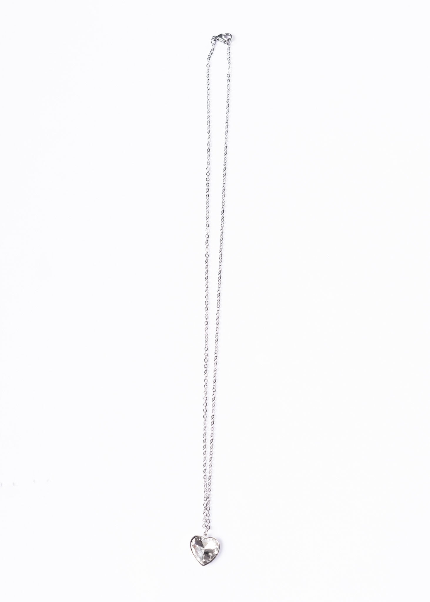 Cadena forcet 50cm con dije corazón de cristal blanco.