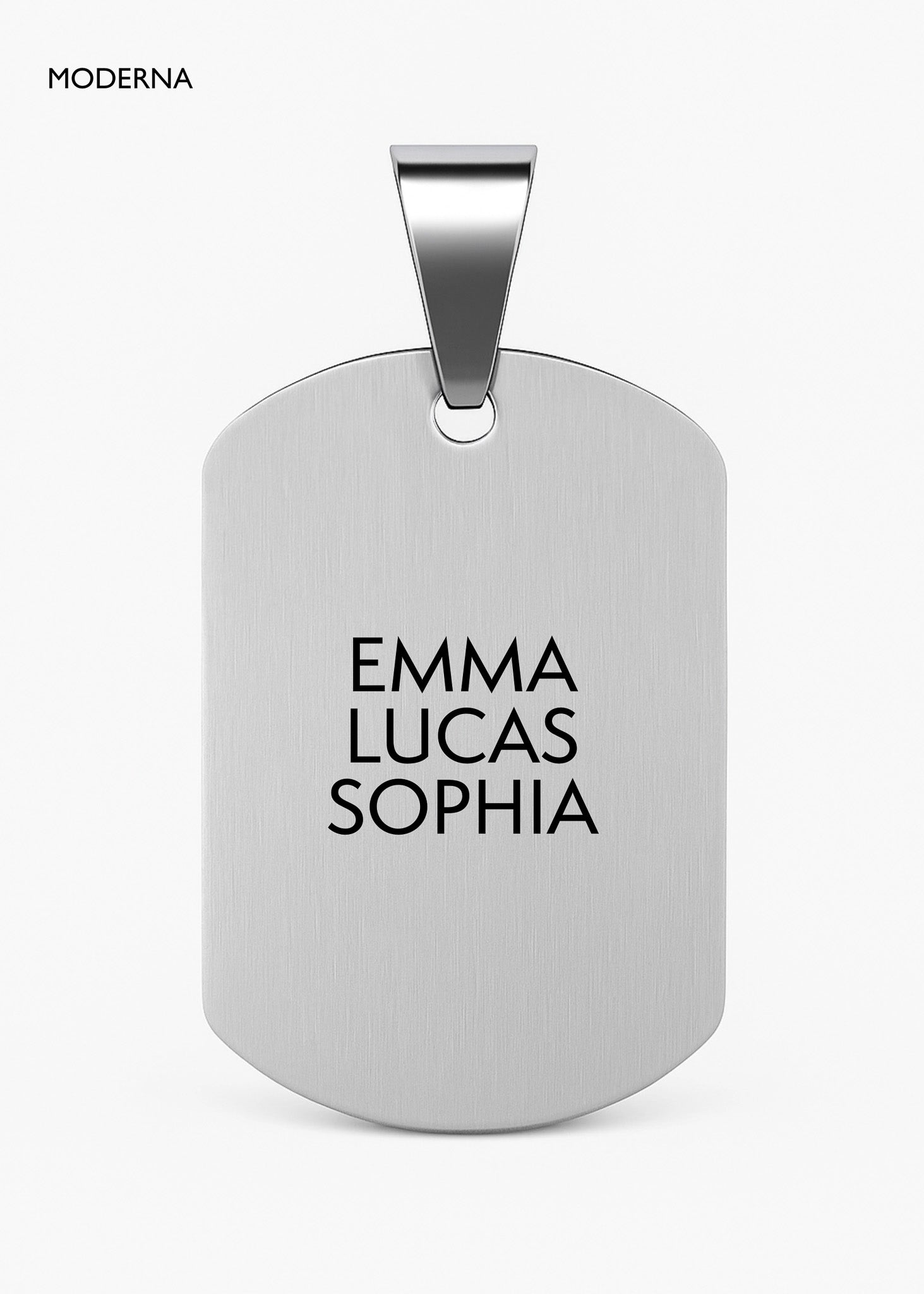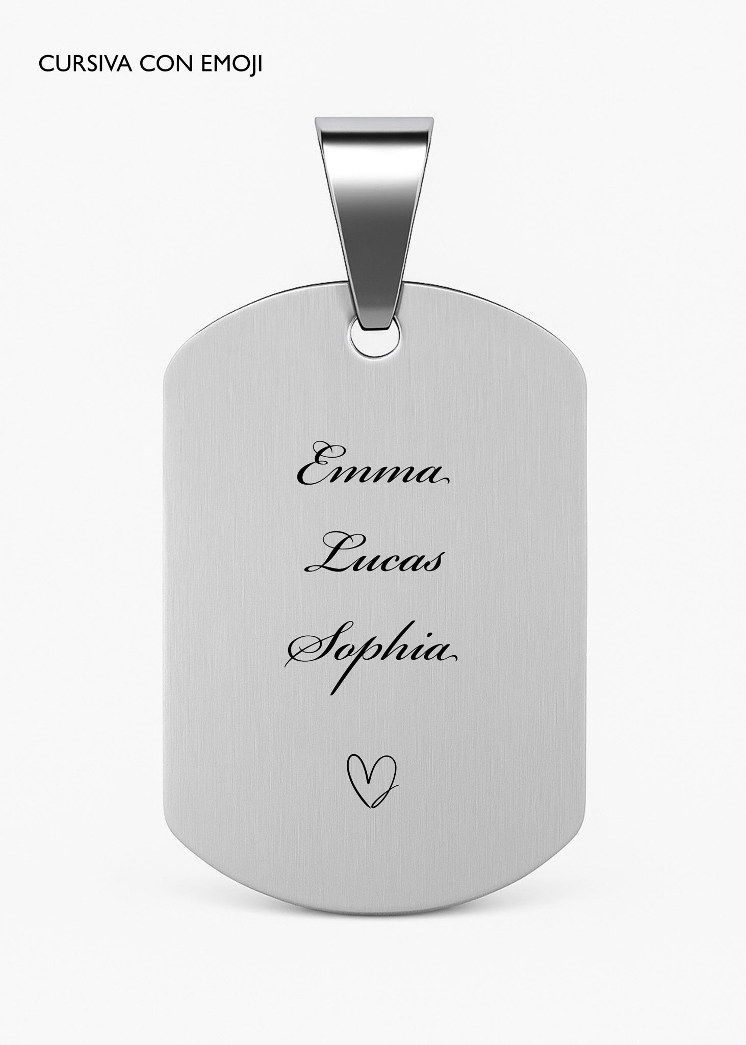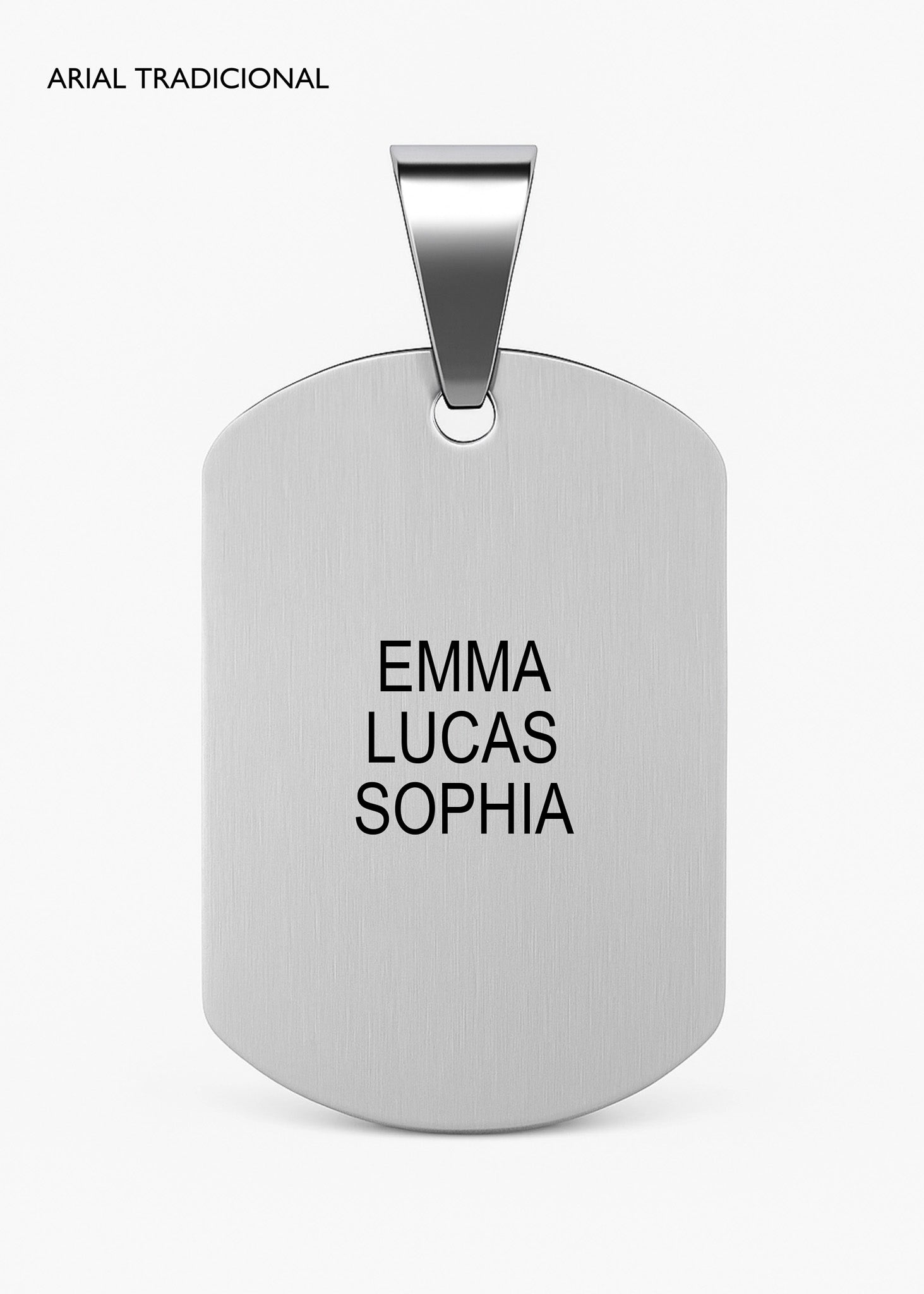 Dije placa estilo militar de 3.6 x 2.3cm (grande).