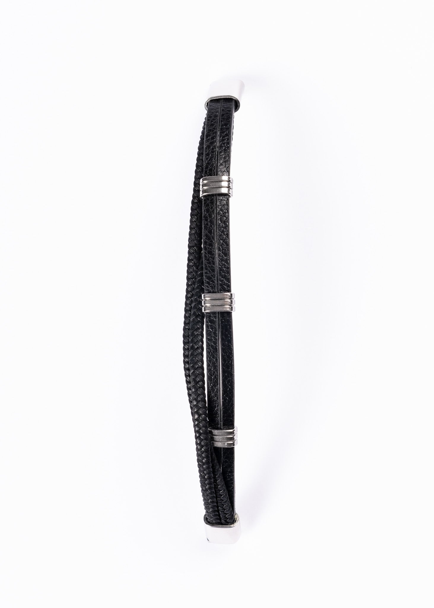 Pulsera triple con tachas cuerina negra - Acero inoxidable