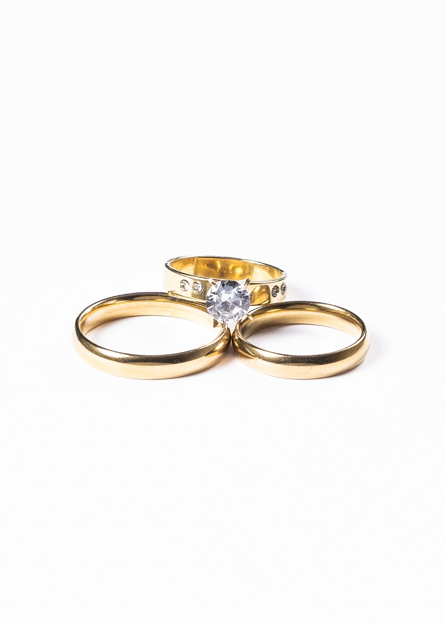 Celebrá el amor, el compromiso y la autenticidad con este set único de dos alianzas bombé y un cintillo moderno, diseñados en acero quirúrgico 316L para durar toda la vida.